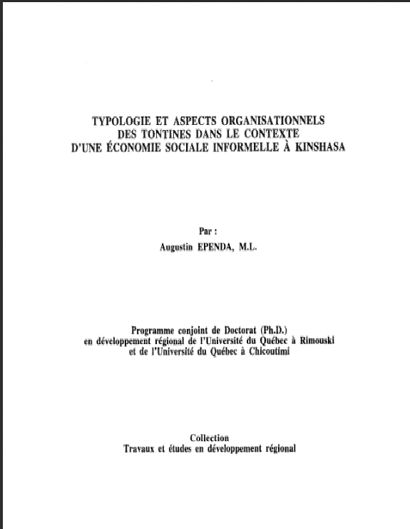 Typologie et aspects organisationnels des tontines dans le contexte d'une économie sociale informelle à Kinshasa